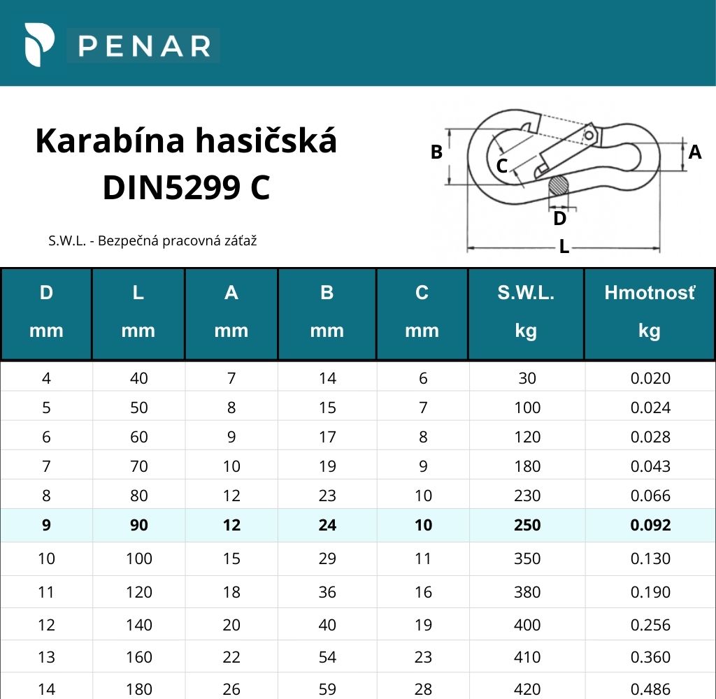 Karabína DIN 5299C nie je pevnostným prvkom na ťahanie alebo zdvíhanie ťažkých bremien.