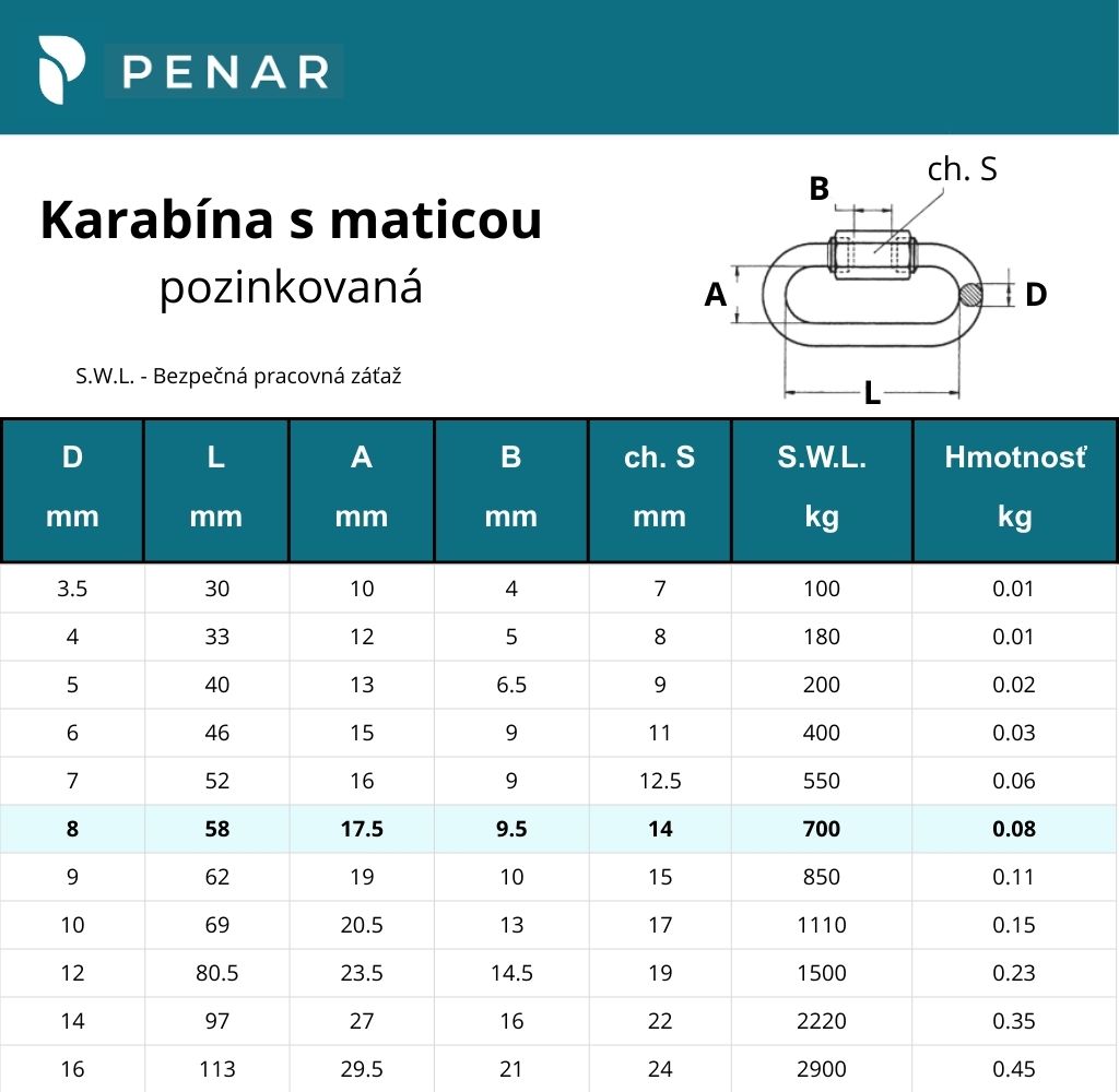 Karabína s maticou nie je pevnostným prvkom na ťahanie alebo zdvíhanie ťažkých bremien.