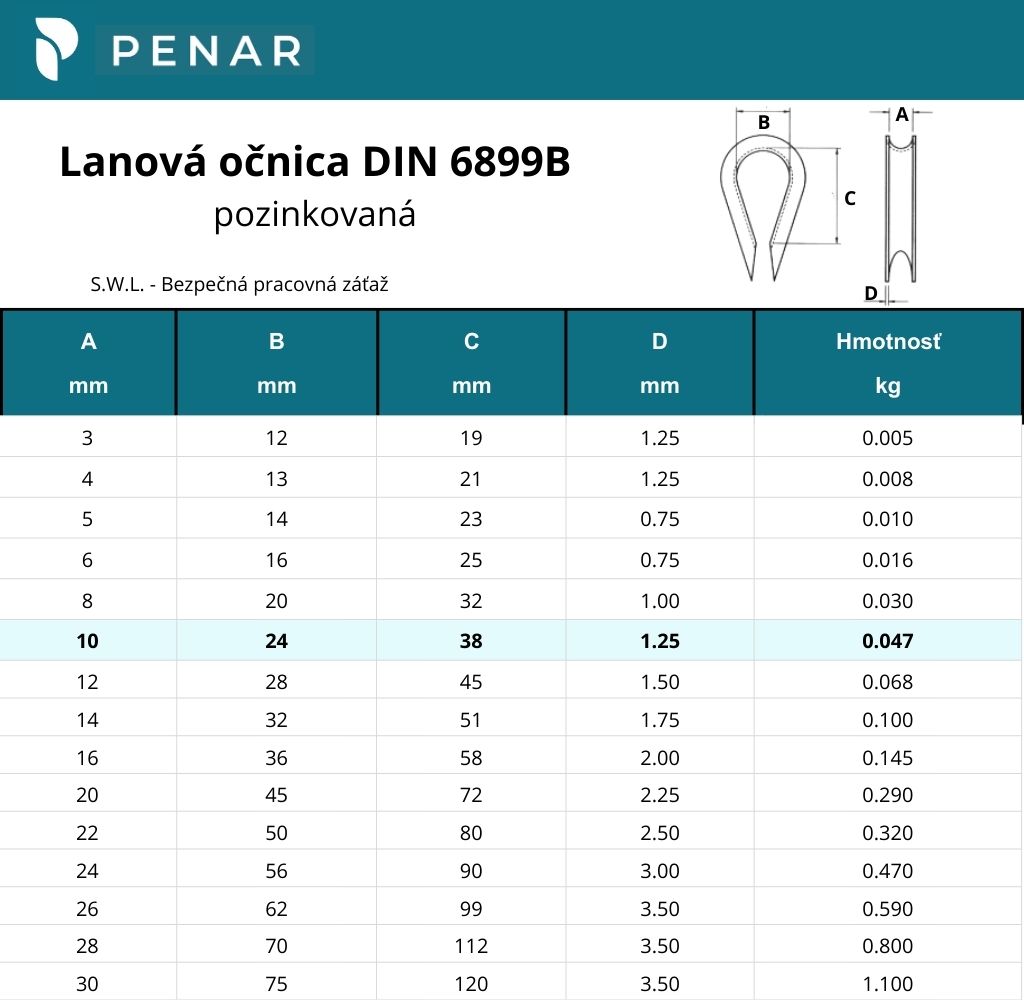 Lanová očnica DIN 6899B je určená na vystuženie lana z kovového aj nekovového materiálu. Účelom je ochrániť oko pred nadmerným ohýbaním a následným prasknutím lana, alebo aj kábla. Zároveň je lano chránené aj pred oderom, takže nepríde k rýchlemu opotrebeniu lana a vďaka očnici je pohyb cez slučku plynulejší. Lanová očnica má svoje využitie všade tam, kde potrebujete zabezpečiť zvýšenú pevnosť lana, resp. slučky lana, napríklad vo výrobe, na stavbe či v priemyselných odvetviach.