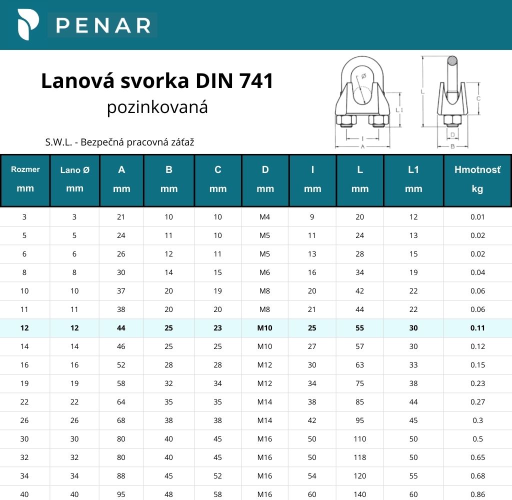 Lanové svorky DIN 741 sú potrebným príslušenstvom k oceľovým lanám. Pre správne použitie je potrebné mať lanovú svorku správnej veľkosti pre priemer použitého lana.
