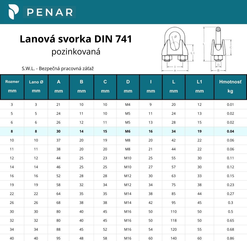 Lanové svorky DIN 741 sú potrebným príslušenstvom k oceľovým lanám. Pre správne použitie je potrebné mať lanovú svorku správnej veľkosti pre priemer použitého lana.