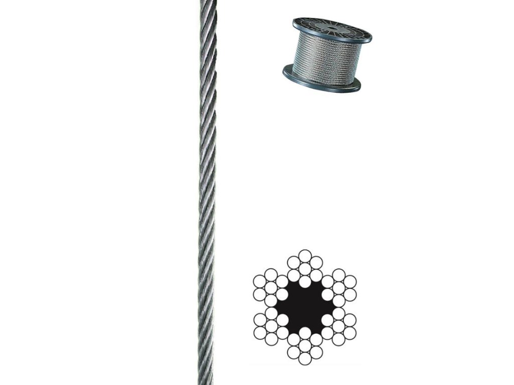 Oceľové lano DIN 3055 spletenie 6x7+FC 5mm Zn