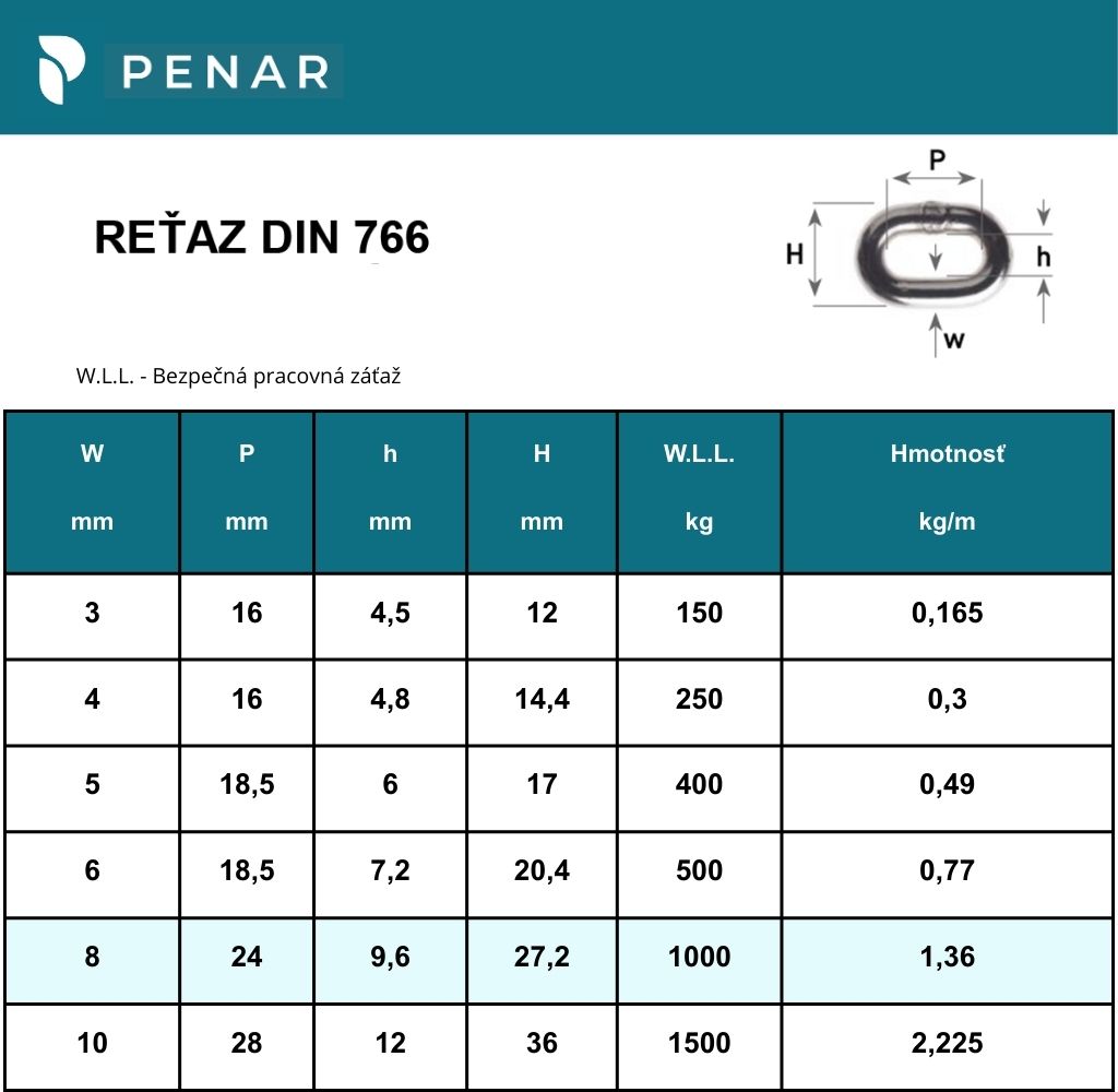 Reťaz DIN766 sa predovšetkým používa k udržaniu zavesených bremien.