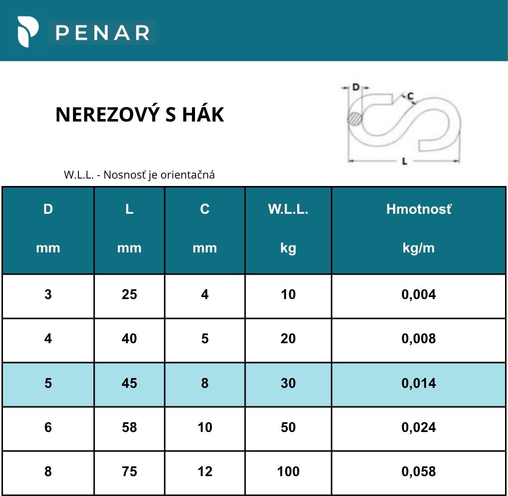 Nerezový S hák je praktický a jednoduchý závesný prvok, ideálny pre široké spektrum aplikácií v domácnosti, dielni, záhrade, na stavbe a v priemysle. Tento hák je navrhnutý tak, aby poskytoval rýchle a efektívne zavesenie alebo spojenie reťazí, káblov alebo iného príslušenstva, čím zjednodušuje manipuláciu a organizáciu.